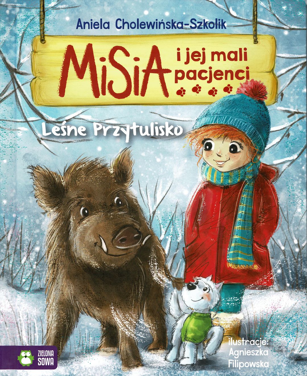 Misia spędza ferie zimowe w leśniczówce wujka Piotra, który prowadzi schronisko dla dzikich zwierząt. Misia wraz z kuzynem Jankiem chętnie pomagają w opiece nad mieszkańcami Leśnego Przytuliska. Podczas gdy dziewczynka i Popik powoli zdobywają zaufanie i przyjaźń dziwnie markotnego dzika, do leśnej zagrody trafia ranny łoś, a w pobliżu coraz częściej przesiaduje pewna sowa. Misia i Popik jak zwykle zrobią wszystko, żeby pomóc zwierzętom. [opis z lubimyczytac.pl]