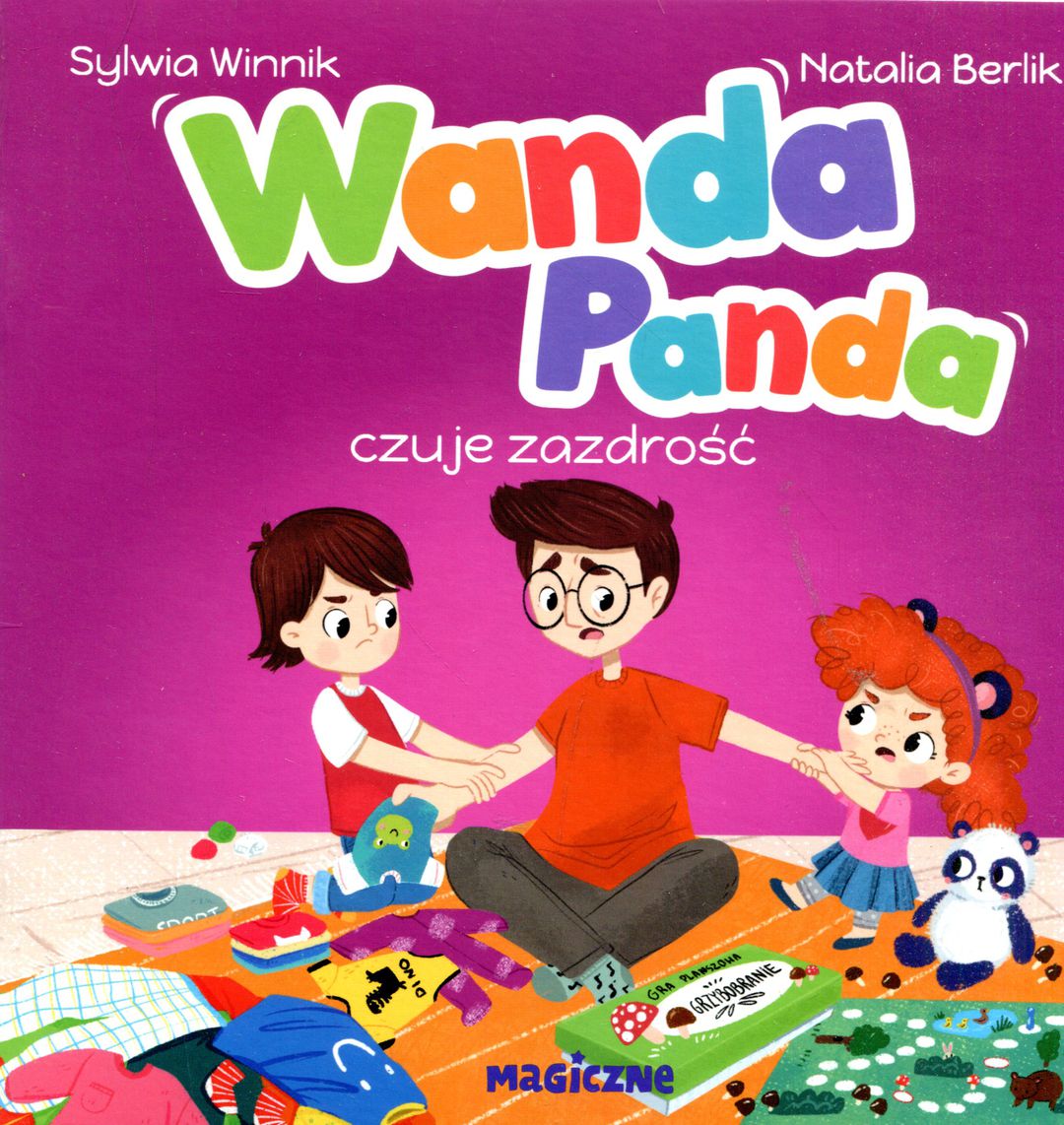 Dziś Wanda i Wini są pod wpływem wielkich emocji. Bardzo chcieliby mieć rodziców tylko dla siebie i pobawić się z nimi tu i teraz. Rodzice wytłumaczą dzieciom, czym jest zazdrość i że odczuwa ją każdy z nas. Podpowiedzą, jak sobie radzić w takich sytuacjach. Przypomną im także, że zawsze mogą liczyć na rodzinę w trakcie przeżywania trudniejszych chwil. „Wanda Panda” to seria książek dla najmłodszych idealna do rodzinnego czytania i wspólnego odkrywania świata. Autorka skupia się na codzienności małych dzieci, które każdego dnia napotykają różnego rodzaju wyzwania i poznają zaskakujące fakty o sobie samych i o tym, co nas otacza. Książka jest tworzona we współpracy z psychologiem dziecięcym, dzięki czemu może z powodzeniem wspierać dorosłych w wychowaniu najmłodszych. [nota wydawcy]